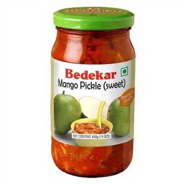 Bedekar Sweet Mango Pickle is a sweeter sister of the classic Mango Pickle made using the signature Bedekar Spice Blend. It is not to be confused with the Gujrati Gol Kairi pickle.